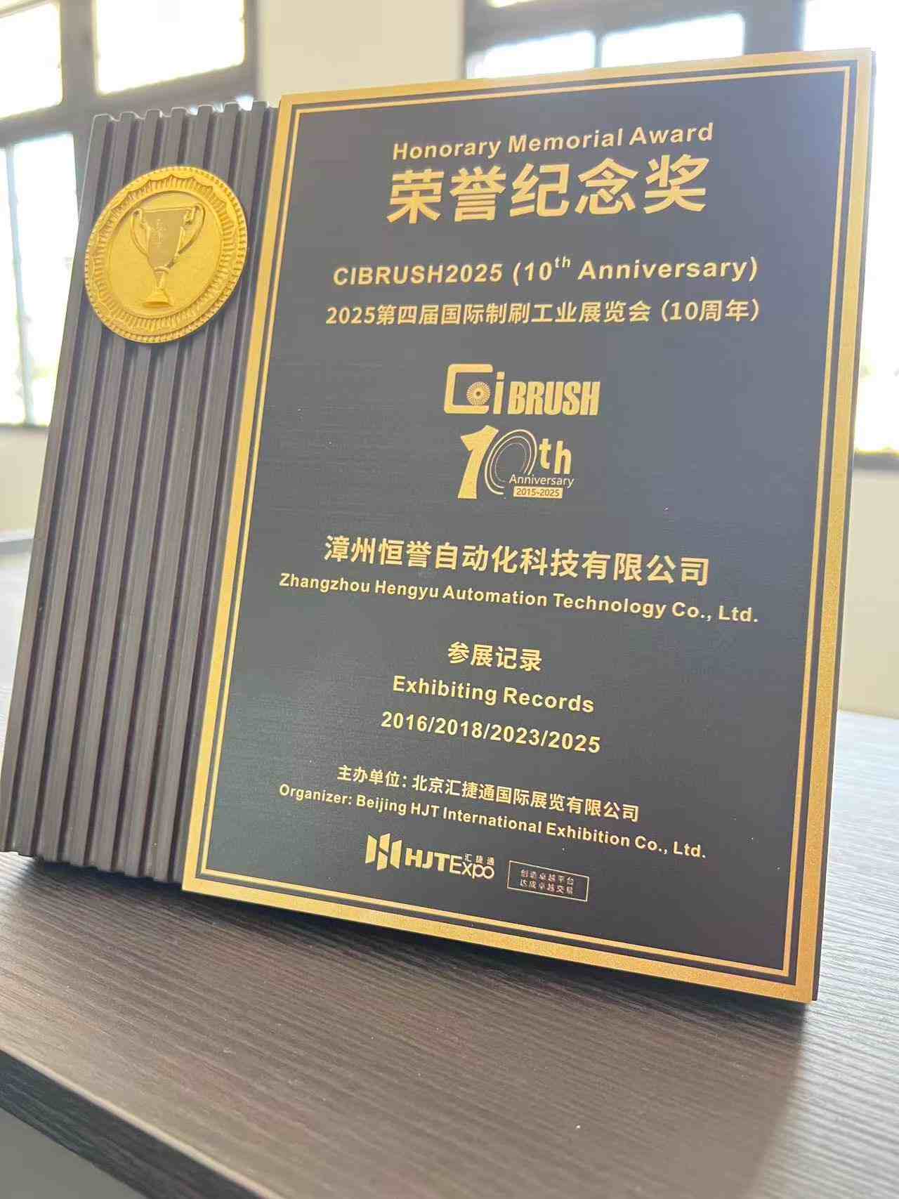 Temos o prazer de compartilhar que, de 9 a 11 de dezembro de 2025, participamos da 4ª Exposição Internacional da Indústria de Fabricação de Escovas. Este ano marca um marco especial: nosso 10º aniversário desde 2016! Tivemos a honra de receber o "Prêmio Comemorativo do 10º Aniversário" do comitê organizador.